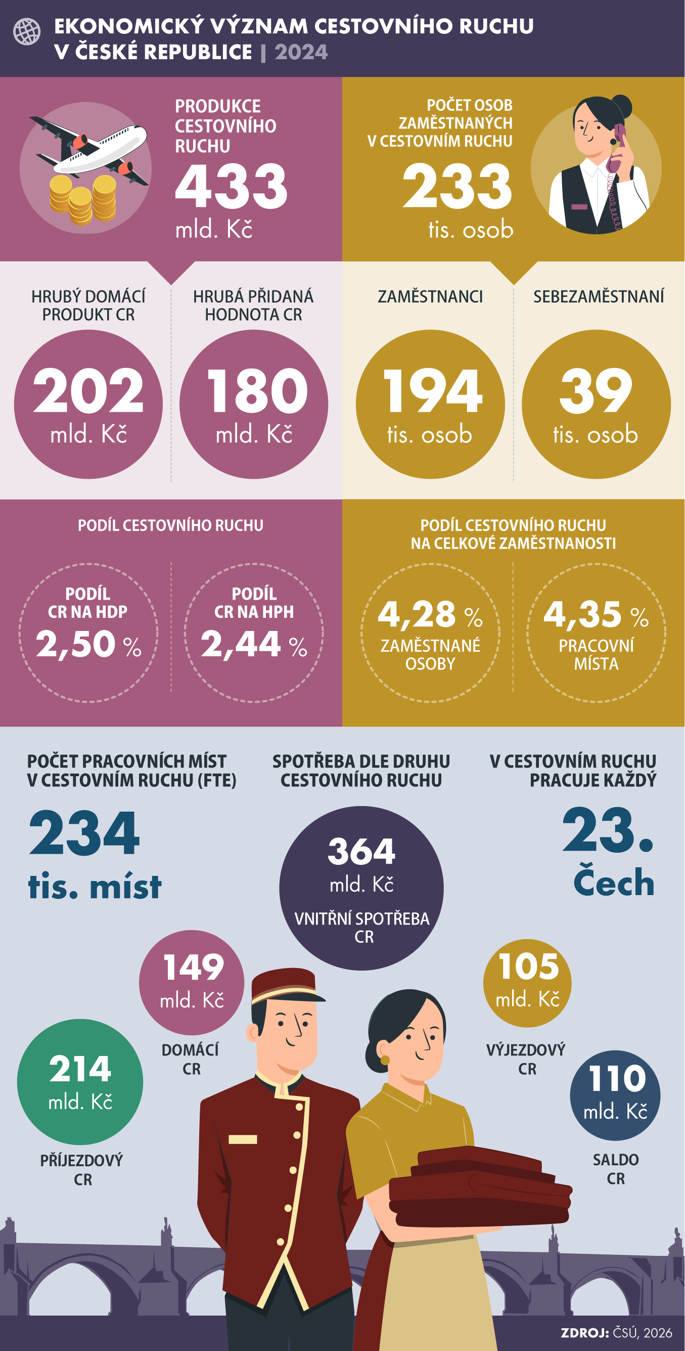 Zdroj dat: Satelitní účet cestovního ruchu, ČSÚ (2026).
